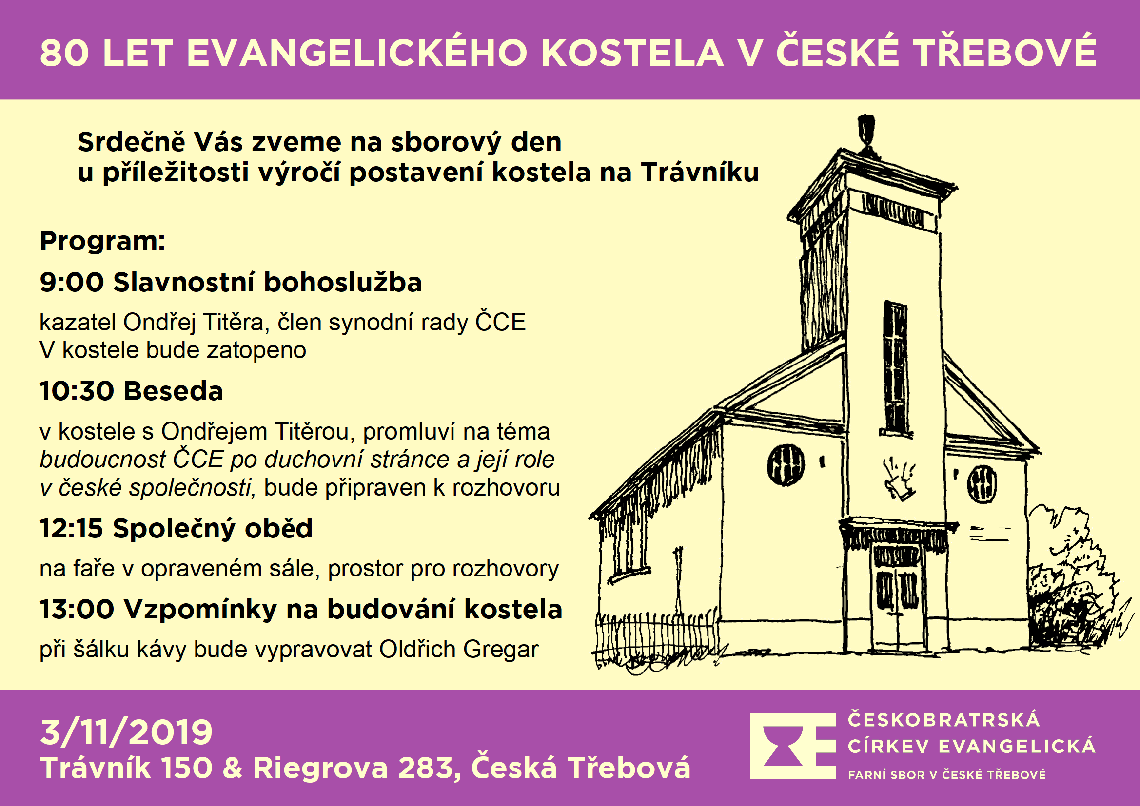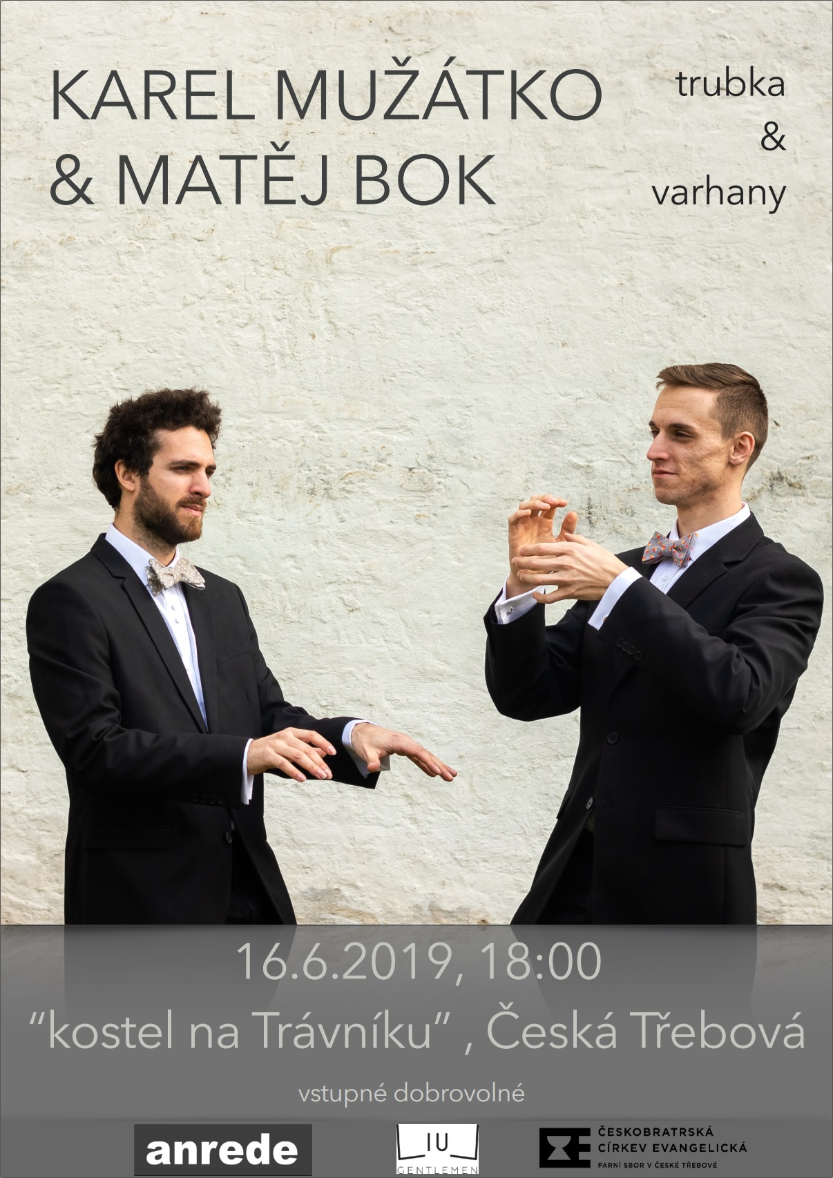 Srdečně zveme přátele i širokou veřejnost na koncert, který se uskuteční v neděli 16. června od 18 h v evangelickém kostele na Trávníku. Vystoupí duo mladých profesionálních hudebníků, kteří interpretují světové skladatele, ale také sami tvoří. Spojení trubky a varhan tvoří velice zajímavý a originální zážitek. Vstupné dobrovolné.